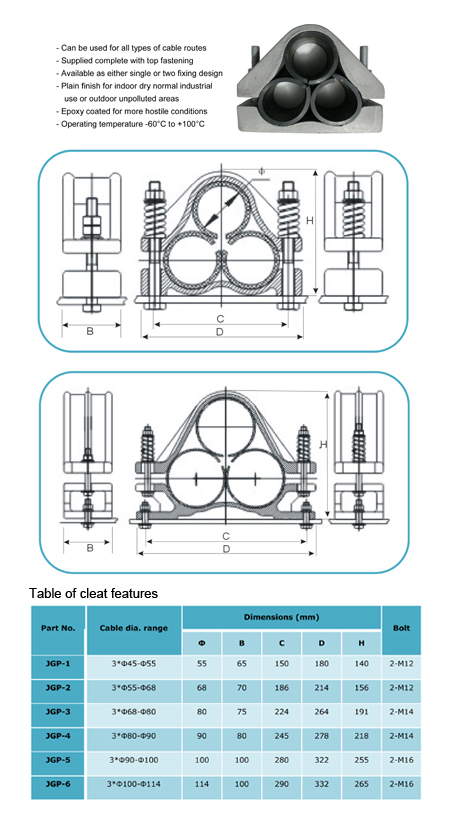 可用于所有類型的電纜路線提供完整的頂級緊固 可作為單個或兩個固定設計 平原完成了室內干燥一般工業(yè) 使用或戶外未受污染的地區(qū) 環(huán)氧涂層更多的敵對狀態(tài)